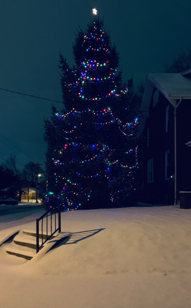 It snowed overnight where we live. I went out before sunrise to clean snow off the cars, and while I was alone in the darkness, I took this picture of the enormous pine tree on the side of our house. Yes, I still have the Christmas lights on the tree, and yes, I’ll probably leave them on the rest of the winter. 🙂