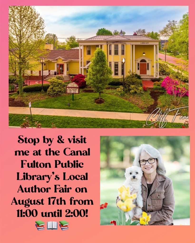 This coming Saturday, August 17th, I’ll be participating in a local author fair at the Canal Fulton Public Library in Canal Fulton, Ohio. From ages 10-18, I lived in Canal Fulton, and I spent hours upon hours in this beautiful, historic library. This library shaped my dream of becoming a writer. That I’m going to be part of a local author fair in this library I’ve loved since childhood is simply surreal.