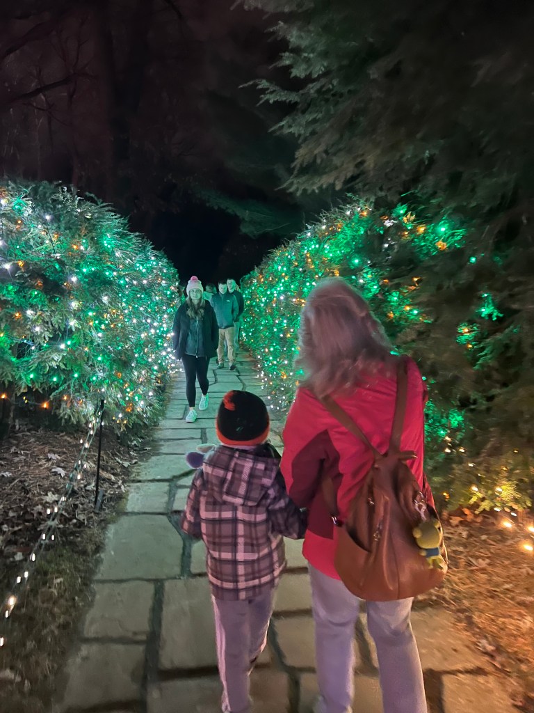 The day after Christmas, I took my grandson, my daughter, my son-in-law, and a friend, to see the Christmas lights at Stan Hywet Hall and Gardens in Akron, Ohio. The home, now a museum and tourist destination, was originally owned by F.A. Seiberling, the founder of the Goodyear Tire and Rubber Company. Every year, the home is decorated with approximately 1.5 million lights. It’s truly magical. I never get over the wonder and beauty of all those lights shining in the darkness.